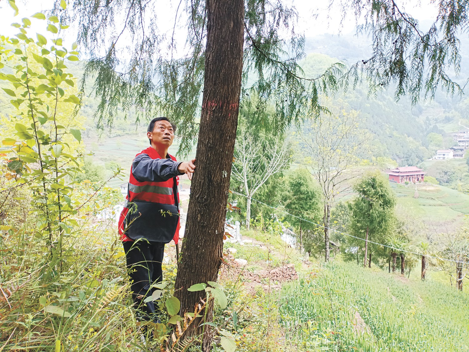 2019年,村里道路拓宽硬化,施工队图方便,竟要在古树旁下铲。马兴全闻讯,护犊般冲到现场,一声大吼:“住手!”他心急火燎地拍照取证,风风火火奔向镇政府和区林业局,“那是活祖宗,砍不得!”在他的奔走呼吁下,道路施工方案为古树绕行,铁甲松不仅保住了命,更荣列古树保护名录。如今,古松那苍劲的虬枝如同石卡村的绿色图腾,承载着他守护生态根脉的无言坚守。