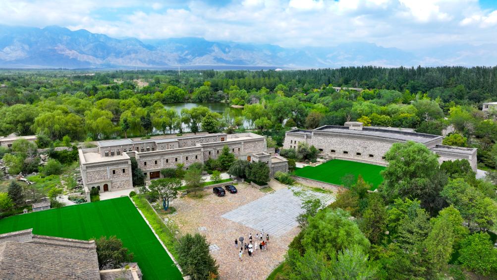 游客在宁夏银川市西夏区镇北堡镇源石酒庄游玩(无人机照片,2024年8月7日摄)。新华社记者 冯开华 摄