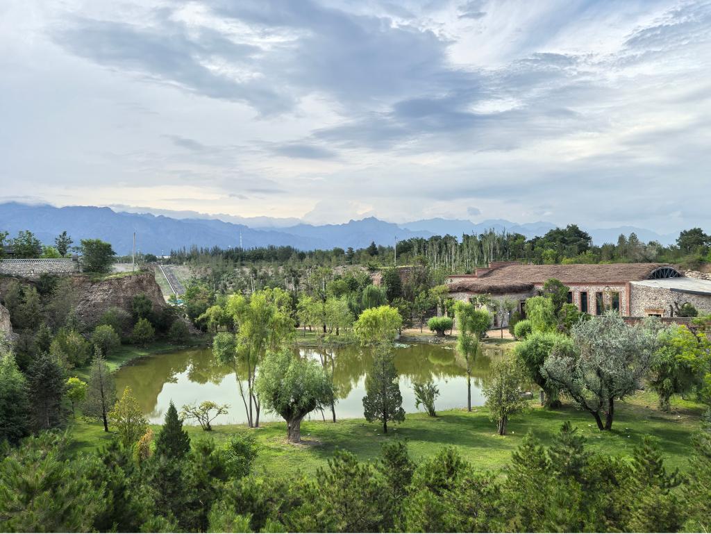 宁夏银川市西夏区镇北堡镇源石酒庄经过修复的废弃矿坑,如今满目新绿(2025年7月8日摄)。新华社记者 马丽娟 摄