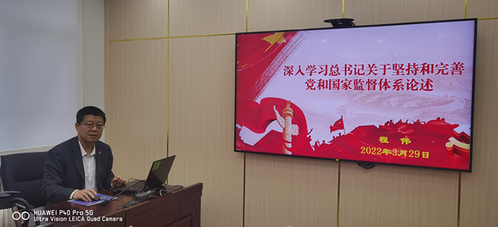 组织廉政警示教育专题学习。班子成员领学《习近平关于坚持和完善党和国家监督体系论述摘编》一书,深入学习习近平总书记系列重要讲话精神,通过学习不断深化思想认识,强化理论武装,筑牢拒腐防变思想防线。