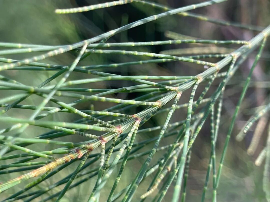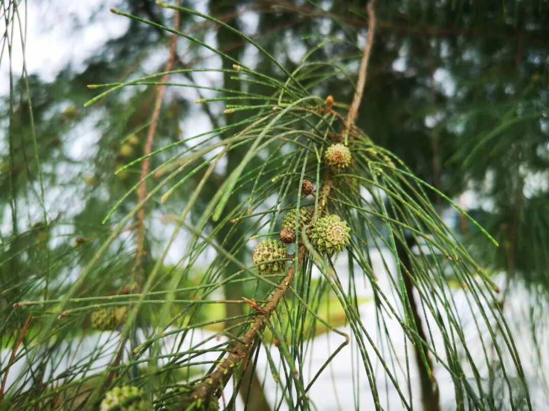 木麻黄的绿色小枝常被误认为是叶子,实际上木麻黄的叶为小齿状或鳞片状,长度仅有1-3毫米,肉眼不易发现。(来源:厦门大学嘉庚学院)