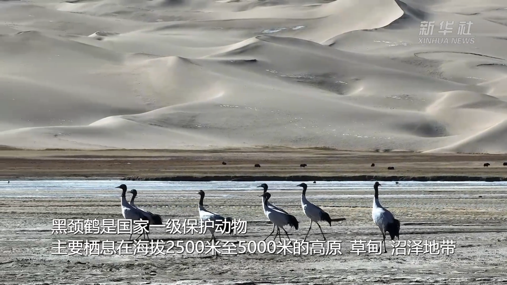 黑颈鹤是国家一级保护动物,主要栖息在海拔2500米至5000米的高原、草甸、沼泽地带。