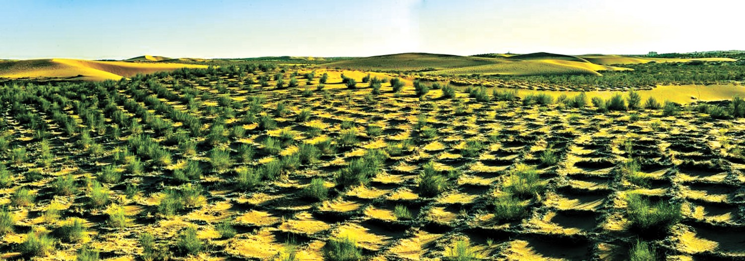 甘肃省民勤县沙咀墩治沙造林区治沙成效显现。民勤县林草局供图