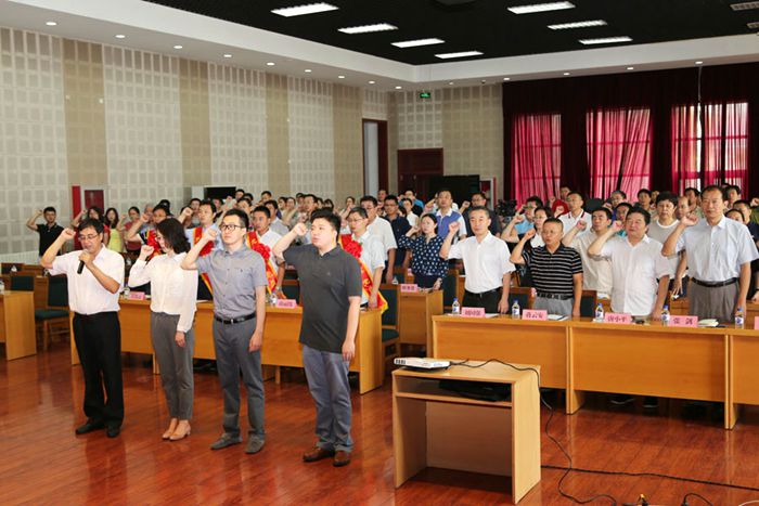 会议首先举行了入党宣誓仪式。张煜星带领3名预备党员面对党旗进行入党宣誓,全体党员参加宣誓,重温入党誓词。随后,张煜星宣读了规划院关于“两优一先”的表彰决定,对获得优秀共产党员、优秀党务工作者和先进基层党支部称号的个人和集体进行了表彰,希望他们珍惜荣誉,谦虚谨慎,再接再厉,在新的起点上再创新的业绩。规划院夏朝宗、蒋丽伟、高作锋、卓凌、吴发云等5名同志荣获“优秀共产党员”称号;储菊香、高金萍、周瑞铜等3名同志荣获“优秀党务工作者”称号;荒漠化监测处党支部、野生动植物监测评估处党支部获“先进基层党支部”称号。