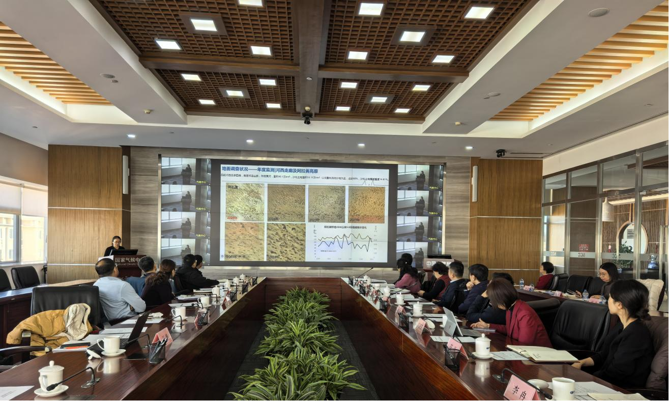 规划院技术人员在会上作了题为《2025年北方地表状况分析》与《2025年春季沙尘天气情况及2026年沙尘天气趋势分析》的专题报告,详细分析了2025年北方地区植被生长状况、降水量、土壤墒情等影响沙尘天气的下垫面因子的特点,并对2026年沙尘天气的趋势作出预测。同时系统展示了规划院在沙尘暴监测方面的技术支撑能力,为全国春季沙尘天气趋势分析提供了科学依据。