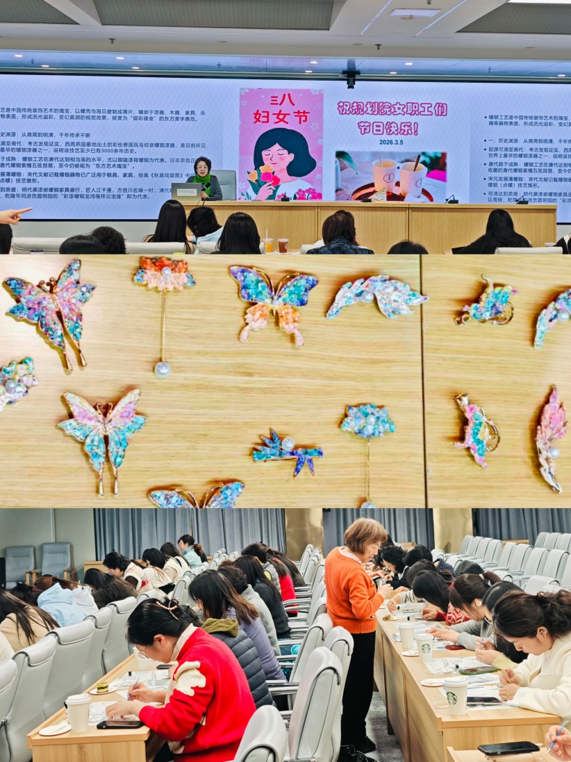 3月5日下午,一场别开生面的“螺钿工艺品制作”非遗手工体验活动拉开帷幕。活动现场,专业指导老师详细讲解了螺钿工艺的历史渊源、艺术价值及制作技法。这项流传千年的传统镶嵌工艺,以其流光溢彩、细腻精致的艺术魅力深深吸引了大家。在老师的指导下,女职工们化身“能工巧匠”,精心选材、细致打磨、巧妙设计、耐心镶嵌,将一片片螺片幻化为胸针、发夹上一幅幅独具匠心的精美图案。大家在动手体验中,不仅感受了非遗文化的独特魅力,更在一敲一磨、一贴一嵌间,体悟到专注执着、精益求精的工匠精神。此外,院工会还组织了手作手机包活动,同样受到女职工们的热烈欢迎,现场气氛温馨热烈。
