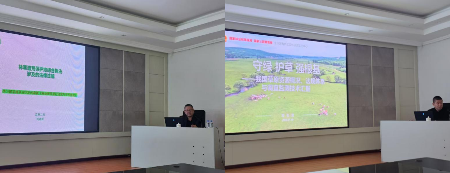 邓长贺以《守绿护草强根基--我国草原资源概况、法规体系与调查监测技术汇报》为题,结合本处室工作职能,系统讲解了我国草原资源的概况,草原资源的相关法律法规及草原资源的调查监测方法。