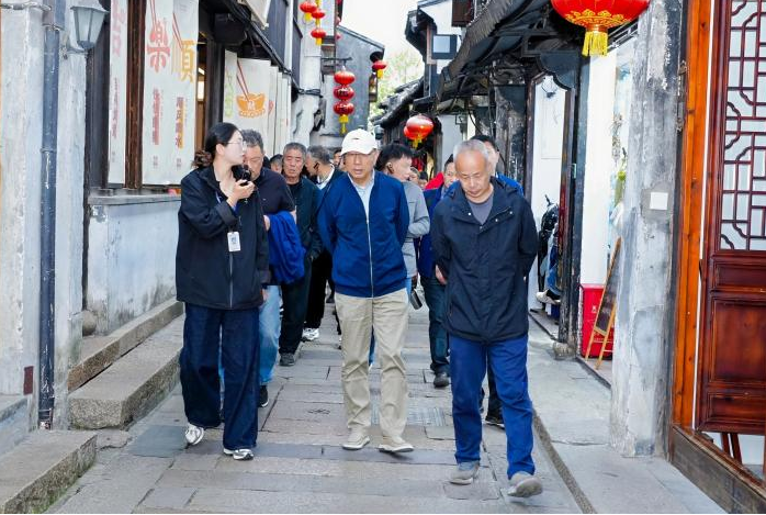 活动中,老干部们前往西塘古镇,漫步烟雨长廊,欣赏水乡风貌,大家边走边聊,共话单位发展,交流退休生活。古镇节奏缓慢而悠然,白墙黛瓦、春风拂面,令人身心放松。在古镇西园,大家走进根雕艺术馆,近距离观赏根雕工艺品,品味传统技艺的精妙。