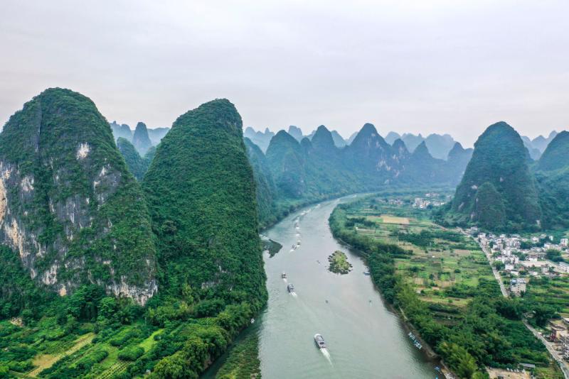 ↑这是漓江广西阳朔段风光(2021年4月25日摄)。