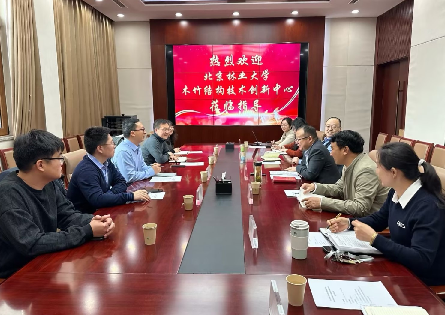 北京林业大学木竹结构技术创新中心负责人介绍了中心的发展历程、核心研究方向及最新研究成果。随后,双方围绕木竹领域技术研发与产业应用深度融合展开研讨,在资源整合、优势互补等方面达成广泛共识。双方一致期望,通过项目共建、人才共育、技术共享等模式打造行业合作典范,进一步深化技术与产业融合,在“十五五”期间助力实现木竹领域高质量可持续发展。