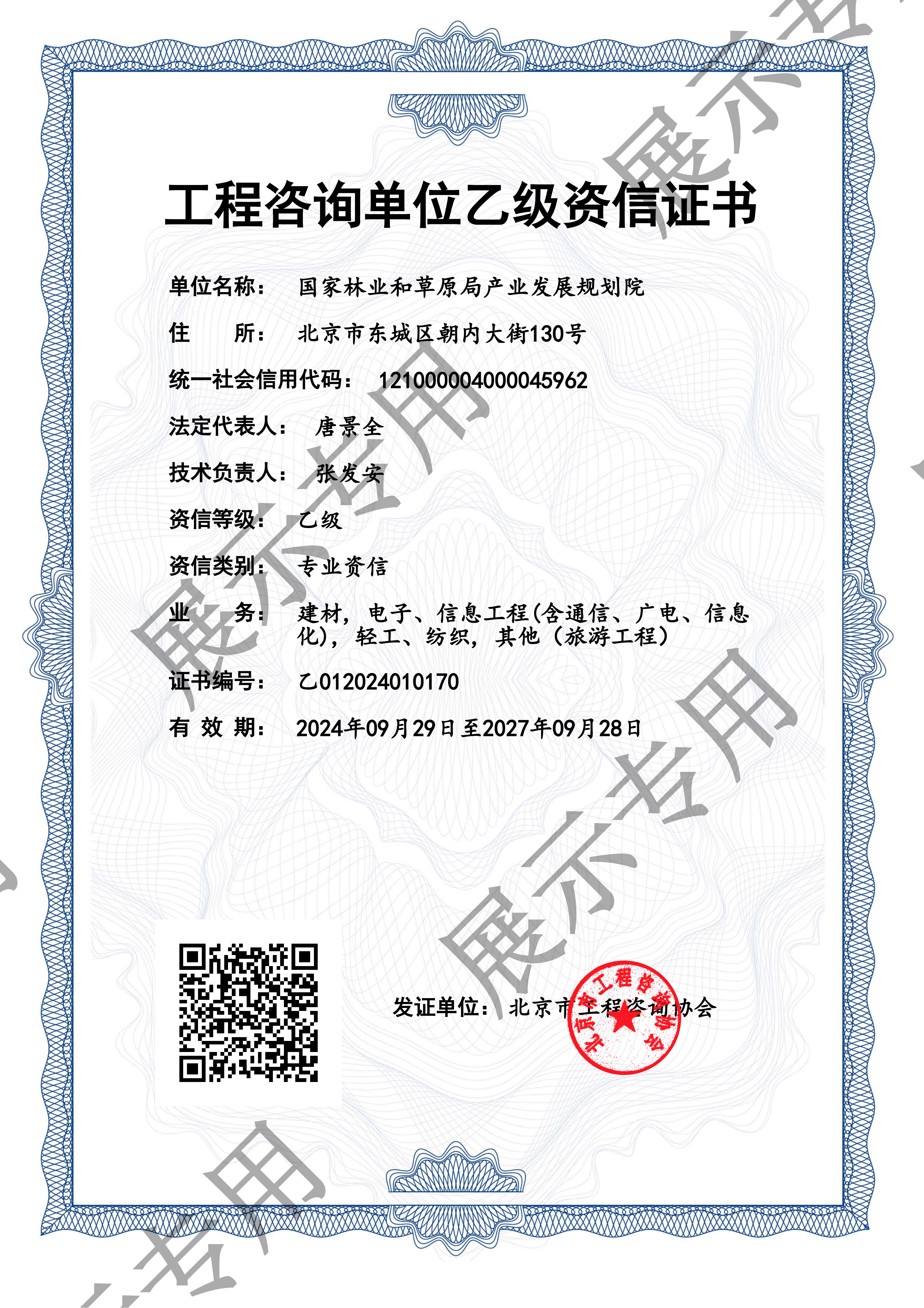 工程咨询单位(乙级)资信证书
