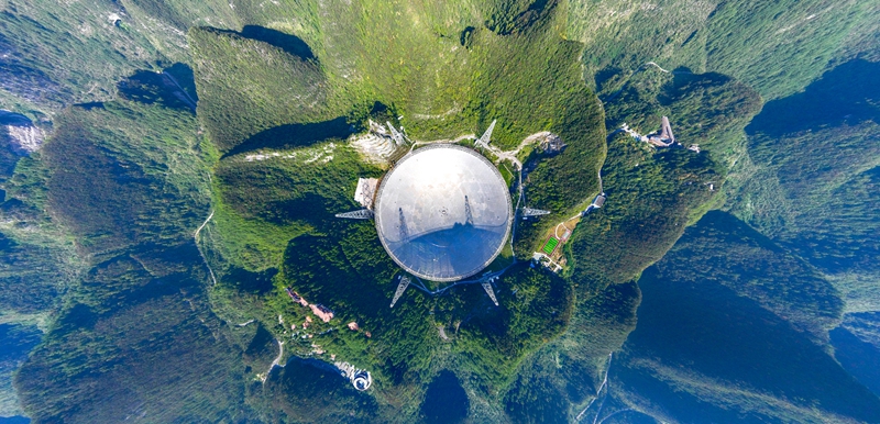 2024年9月25日拍摄的位于贵州省平塘县的“中国天眼”(无人机全景照片,维护保养期间拍摄)。新华社记者 欧东衢 摄