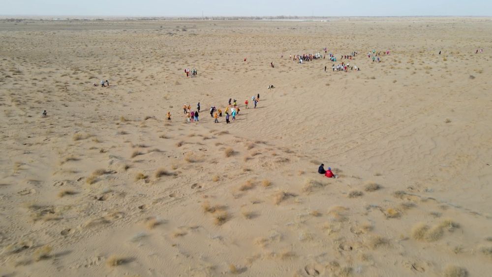甘肃:沙漠腹地忙植树 万亩梭梭迎春风