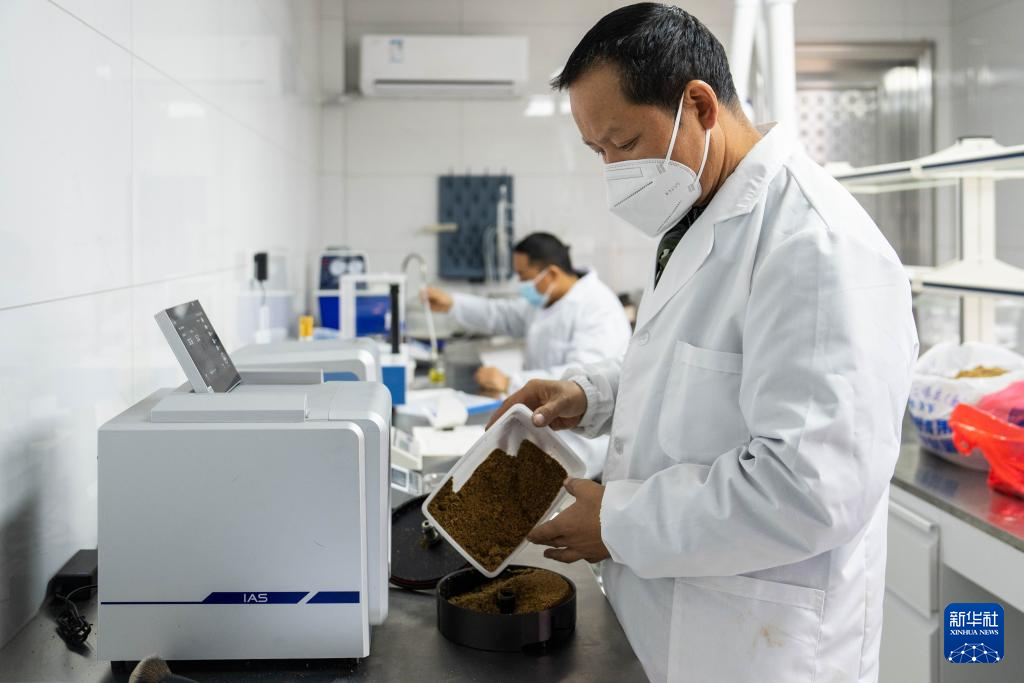 12月7日,工人在位于祁阳市观音滩镇的湖南金波茶油有限公司检测茶油品质。