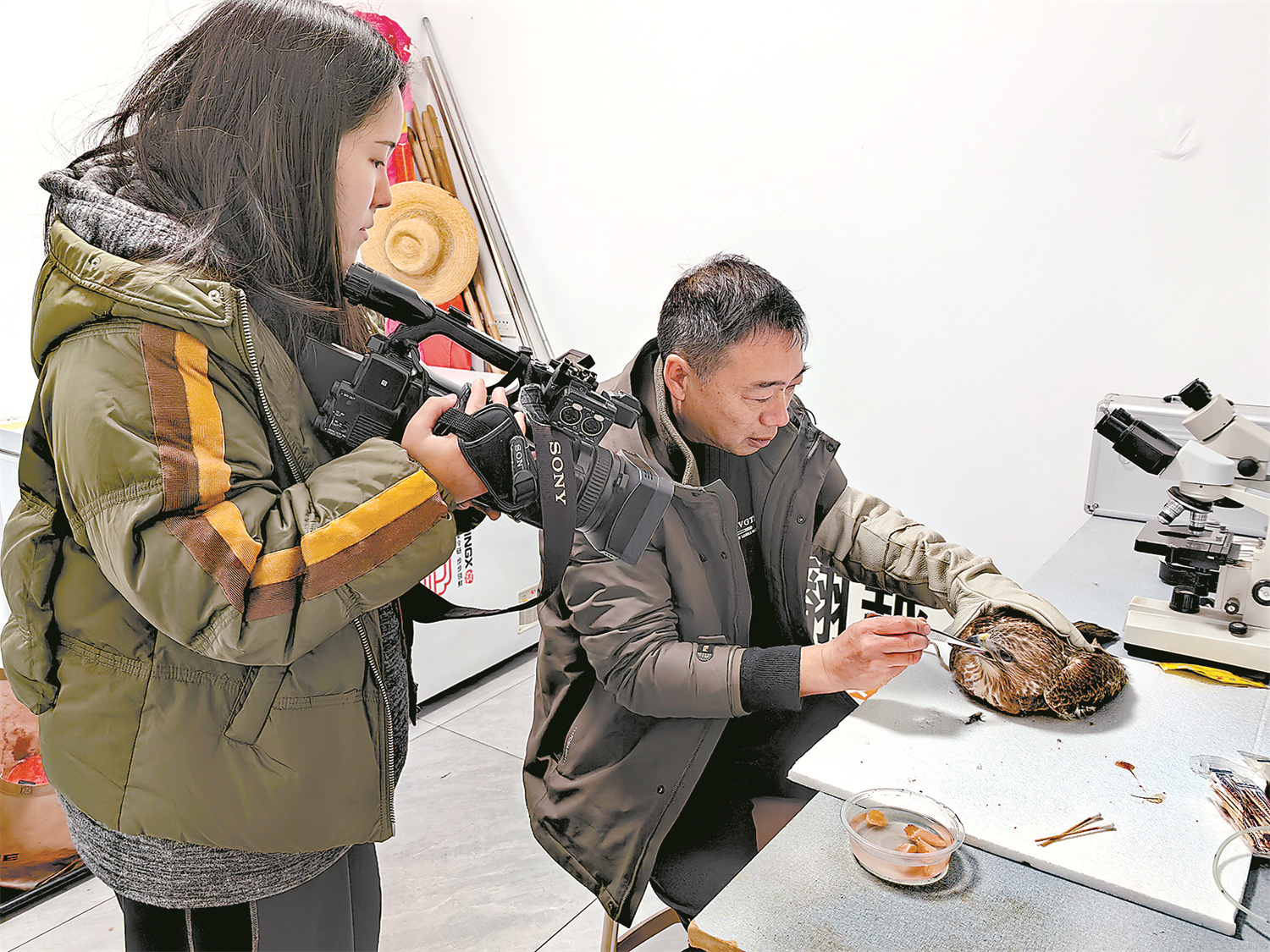 鸟类是这几年他们救助最多的动物。张鹏身板结实,但怀抱被救的小鸟时,却十分轻柔。心细如发的他用小奶瓶、小镊子喂小鸟,唯恐它们吃不进去。他担心它们能否存活,希望用自己的“轻柔”带给它们安全感。