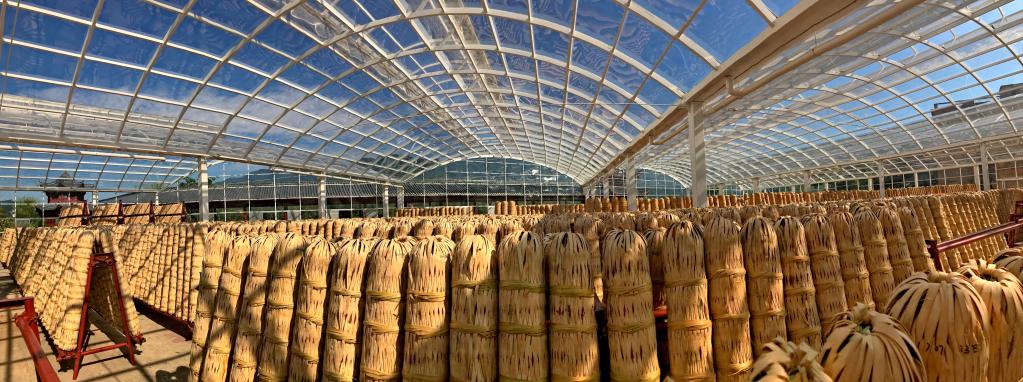 白沙溪茶厂的千两茶晾晒现场。新华社发