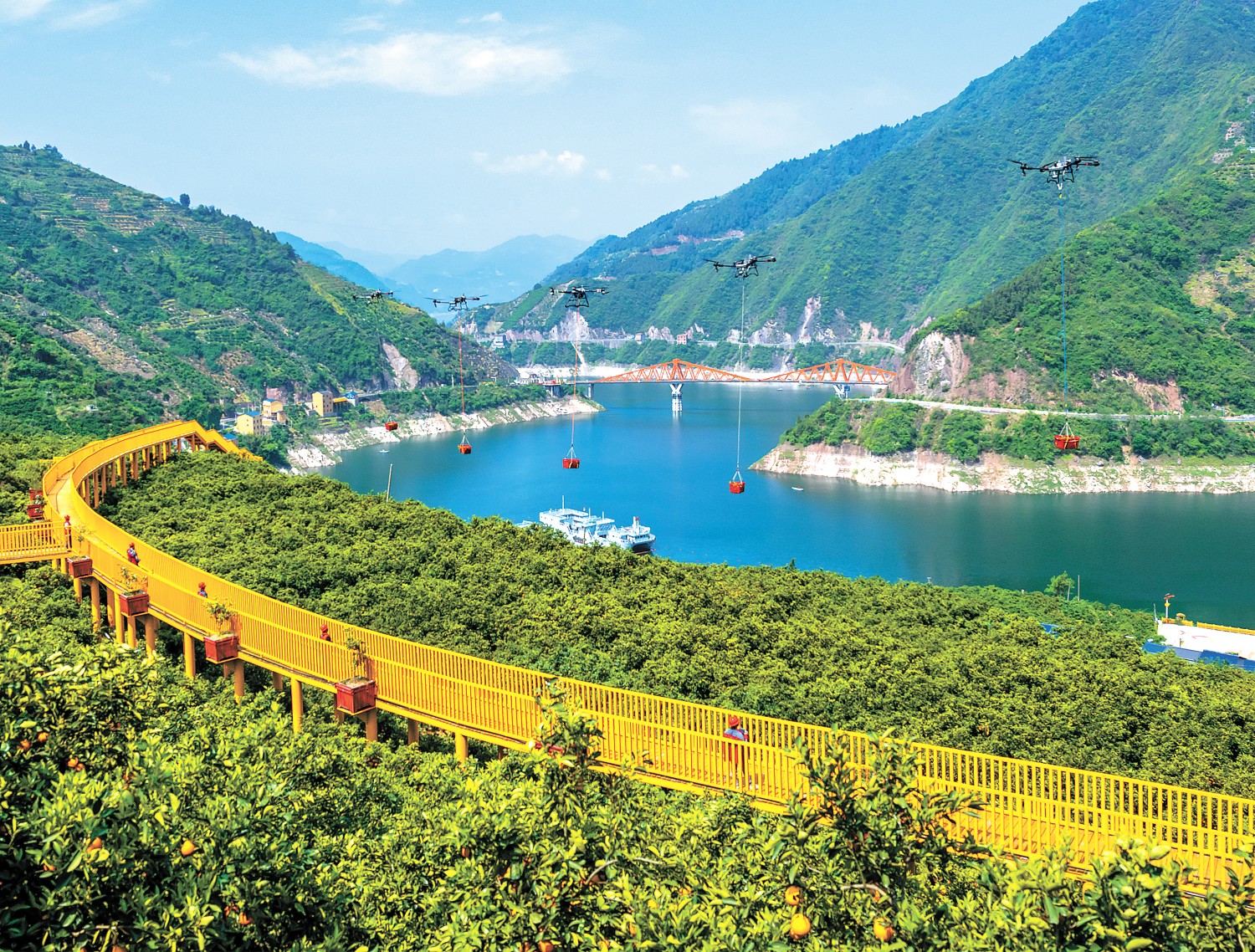 眼下,湖北省宜昌市秭归县12万多亩春季伦晚脐橙正丰收上市,果农采用无人机空中转运脐橙成为新时尚。无人机转运不占耕地,速度快,效率高,打通了脐橙运输“最后一米”,解决了果农背果请人难、转运费用高的困扰。仅此一项,每年可为全县果农节约3000万元。