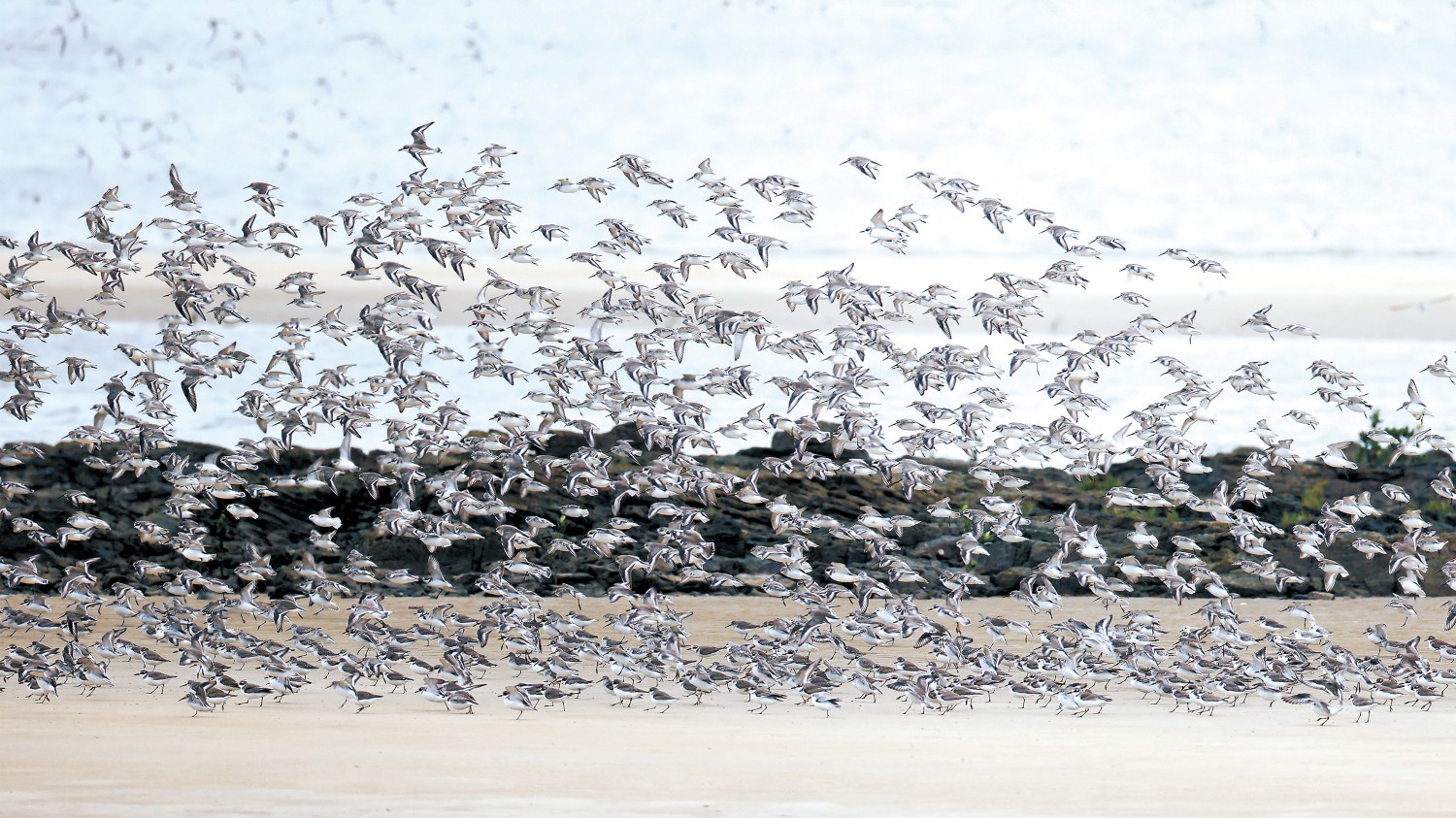 小鹬鸻类鸟群。刘德生摄