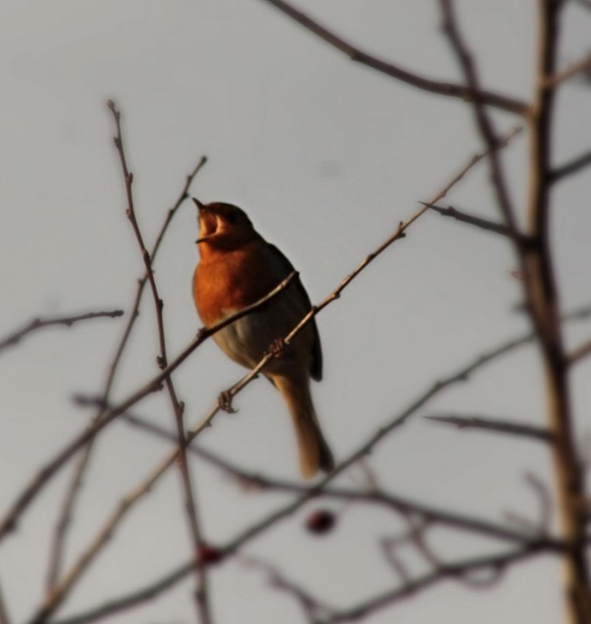 一只欧亚鸲正在枝头报晓(图源:pete beard|Wikimedia Commons)