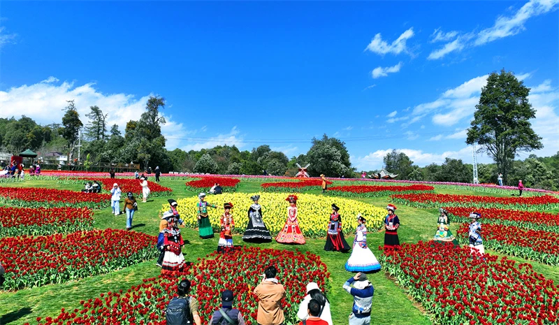依托方山95%森林覆盖率,永仁县深挖方山森林资源和生态价值。科学规划“一核三区”功能布局,配套5千米森林步道,建成郁金香花海、杜鹃花谷等四季有花为主题的生态景观带16万平方米。春可赏花海:1.6万平方米郁金香花海单日最高客流达2.5万人次,成为“网红打卡首选地”。夏可享清凉:建成32间林间避暑木屋,客房预订率超90%;配套中医理疗馆推出“森林SPA”特色项目。秋可游禅境:红枫步道串联千年静德寺,开发“禅修+森林浴”疗愈套餐。冬可育生机:建成12座智能温室培育反季花卉,保障农户年均增收1.2万元。