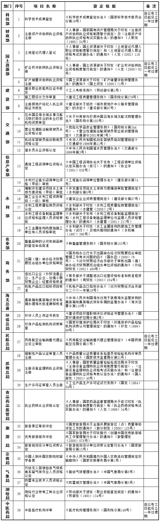 2.国务院决定改变管理方式、不再作为行政审批、实行自律管理的行政审批项目目录(39项)