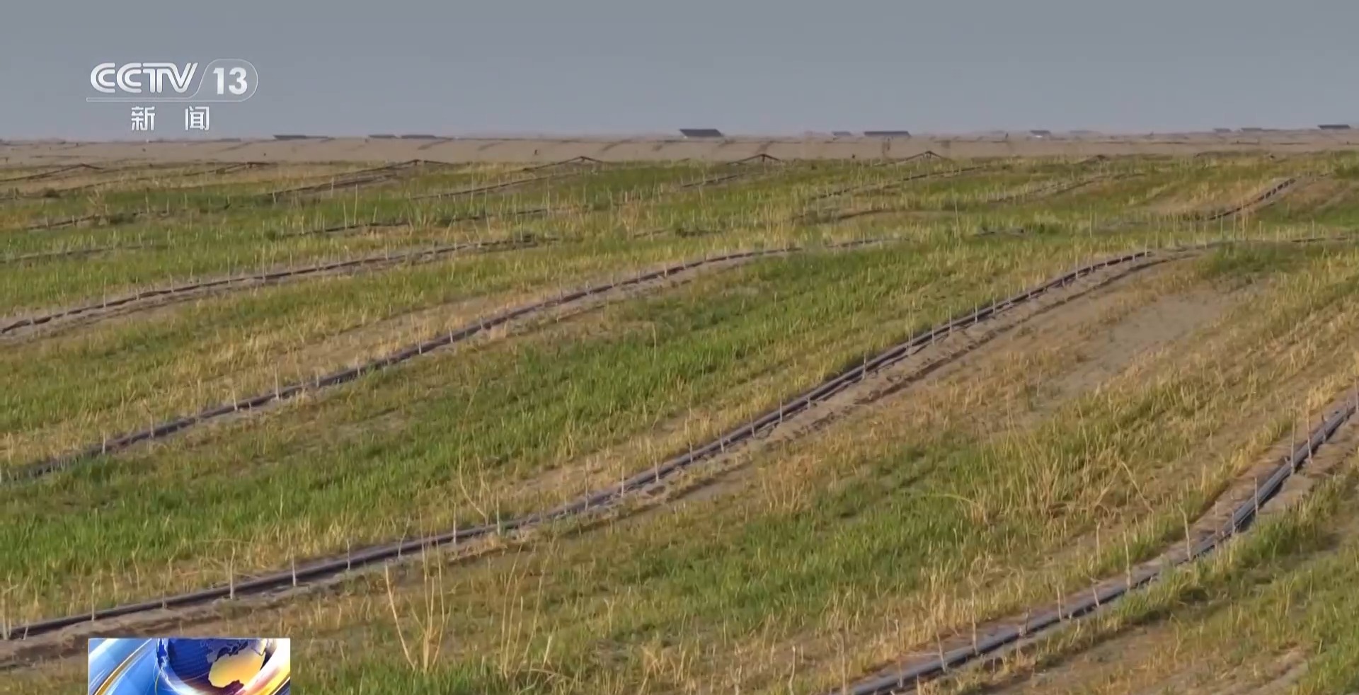 在去年种下的沙枣地里,播种机正将苜蓿、油菜种子均匀撒入提前预留的空白行距。夕阳下,粗口径滴灌带喷出的加压水流,化作一道道细密的水线,进行精细浇灌。这种“林间套种”的模式,让沙地实现了“一地多用”。