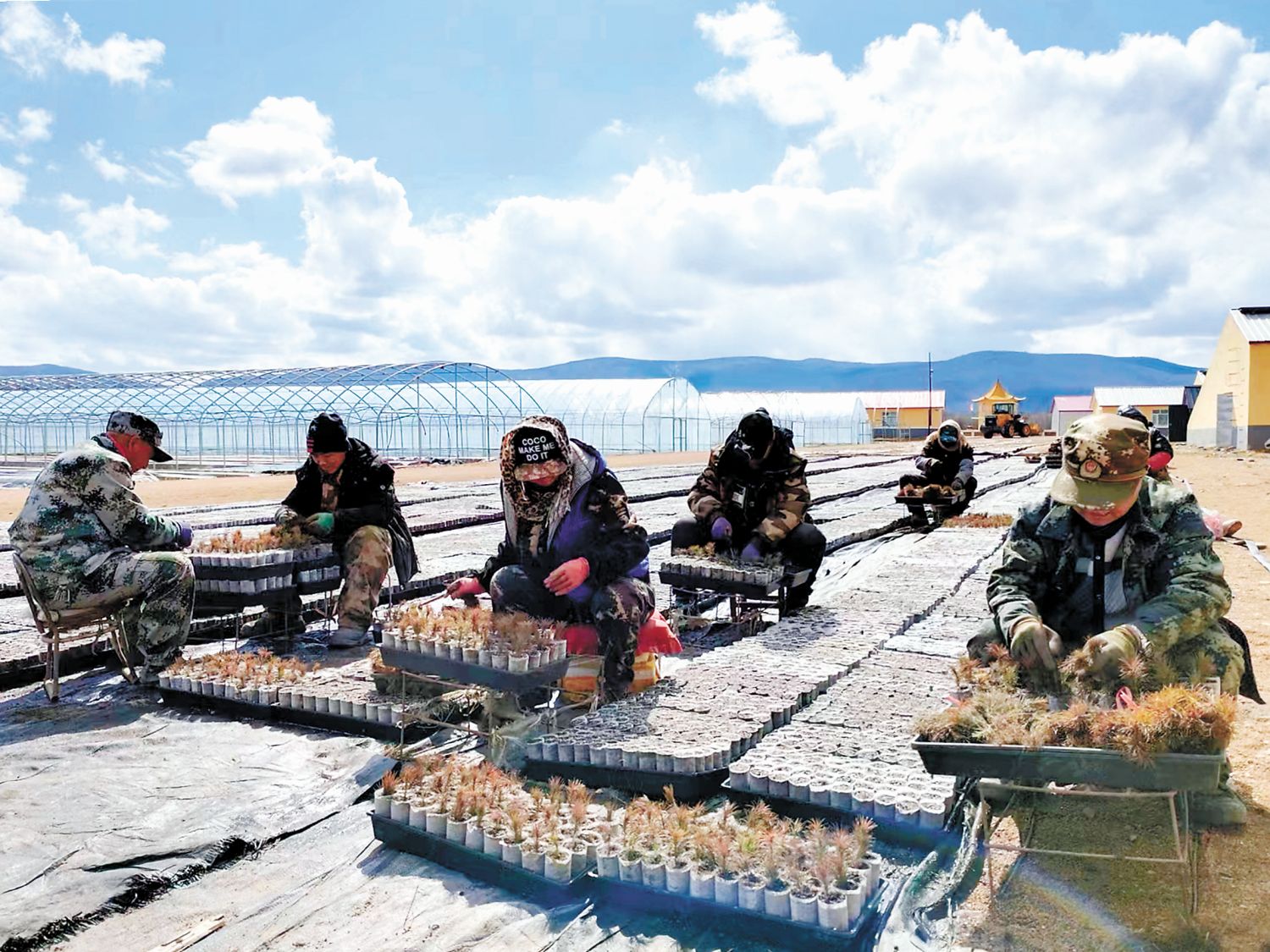 春季苗木换床作业现场。