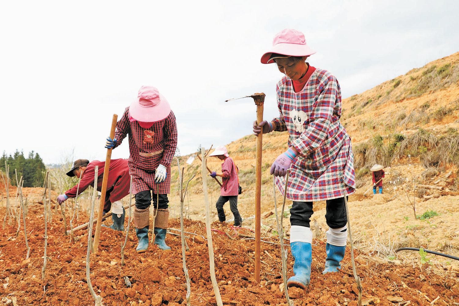 眼下,核桃育苗和管护进入关键期,在贵州省黔东南苗族侗族自治州锦屏县铜鼓镇核桃苗木基地里,村民正在开展育苗、移栽等田间管理。