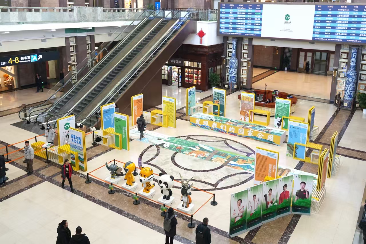 北京火车站,作为国家的重要交通枢纽,人来人往,川流不息。国家公园文化长廊落地北京火车站,旨在让每一位过往的旅客在匆忙的旅途中,通过科普讲解、互动活动和扫码观看线上展等环节的内容,深入了解国家公园所蕴含的丰富文化内涵、发展历程和建设成果,感受大自然赋予我们的珍贵宝藏——国家公园的壮美与神奇,让国家公园理念深入人心。据悉,北京火车站的活动将持续到2025年1月5日。