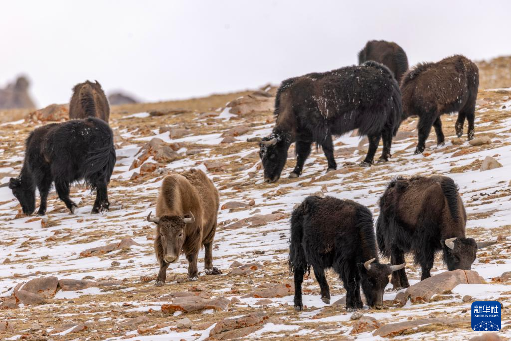 这是在藏色岗日冰川附近拍摄的野牦牛群(3月16日摄)。
