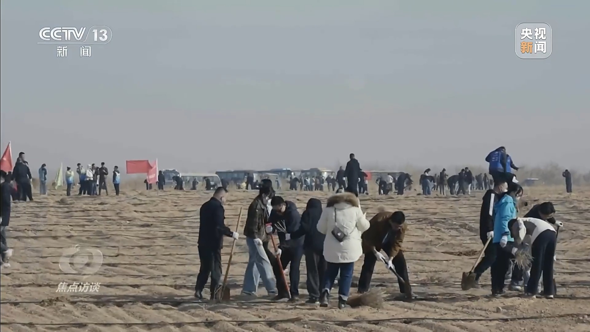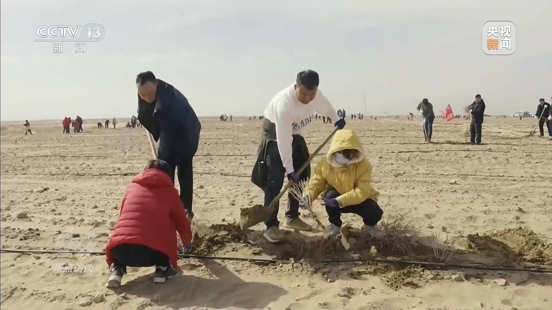 3月下旬,内蒙古巴彦淖尔市磴口县迎来了2026年首次全民义务植树活动,全县1000多名党员干部、青年志愿者,在乌兰布和沙漠生态治理区种下5万多株当地特色优良沙生灌木——四翅滨藜,共完成绿化面积400多亩。