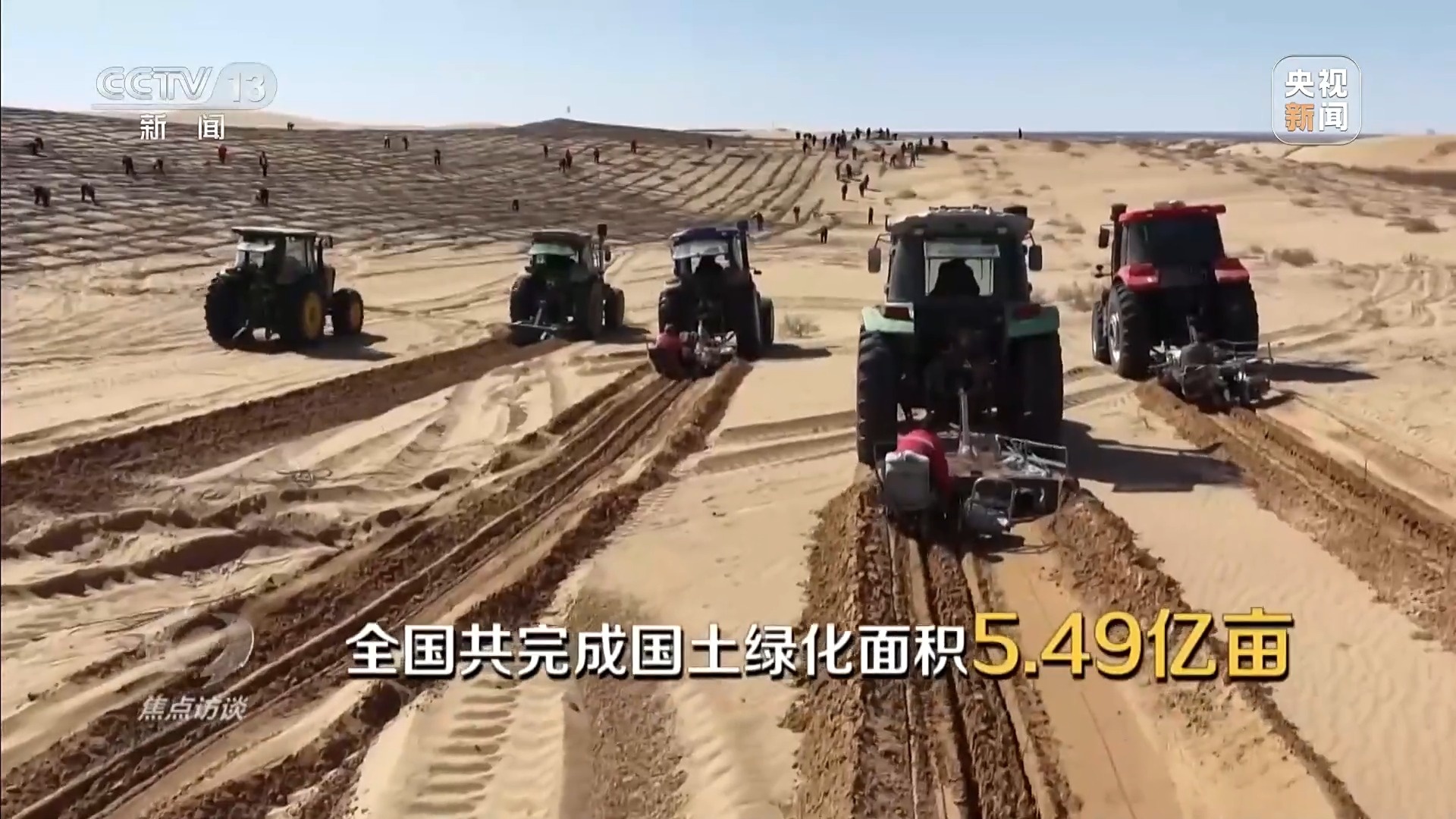 “十四五”期间,全国共完成国土绿化面积5.49亿亩,沙化土地面积减少2290万亩,林草产业总产值接近11万亿元,带动就业6000多万人。