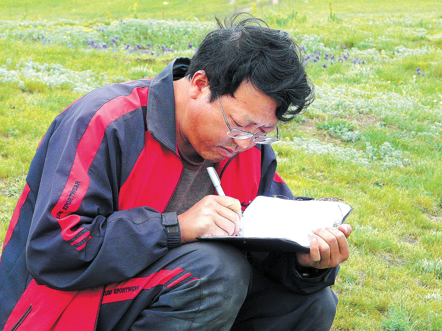 徐先英在玛曲草原调查沙化草原植被