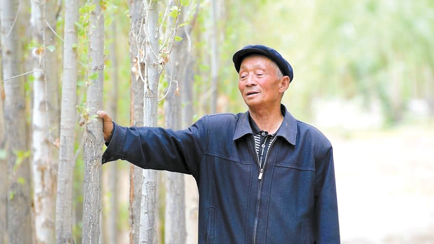 付志周抚摸他栽的树(资料图)