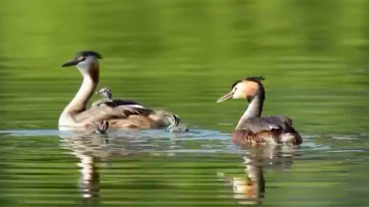 甘肃金昌:凤头鸊鷉携雏鸟上演水中温馨“全家福”