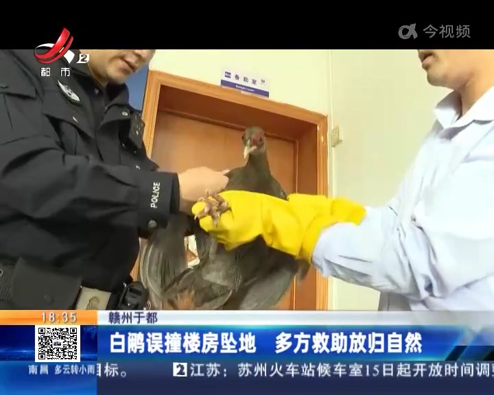 江西于都:白鹇误撞楼房坠地 多方救助放归自然