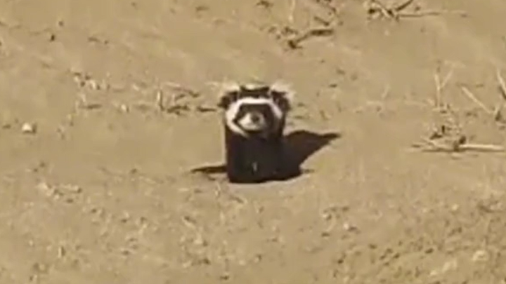 甘肃:荒漠“捕鼠先锋”虎鼬打卡民勤连古城保护区
