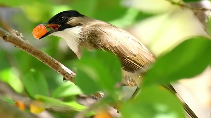 湖北保康:小鸟“组团”啄樱桃 人鸟和谐春光美