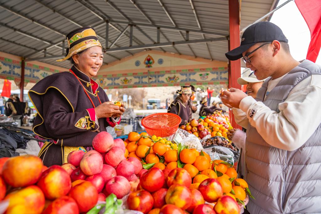如今,通过卖水果,村里不少人家都开上了小轿车。羌渡岗村的水果摊位整洁有序,摆摊的妇女们身穿民族特色服饰,用流利的普通话与游客交流。