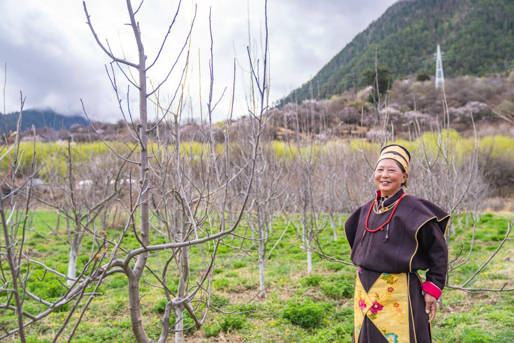 查果在自家果园里(4月1日摄)。新华社记者 孙非 摄