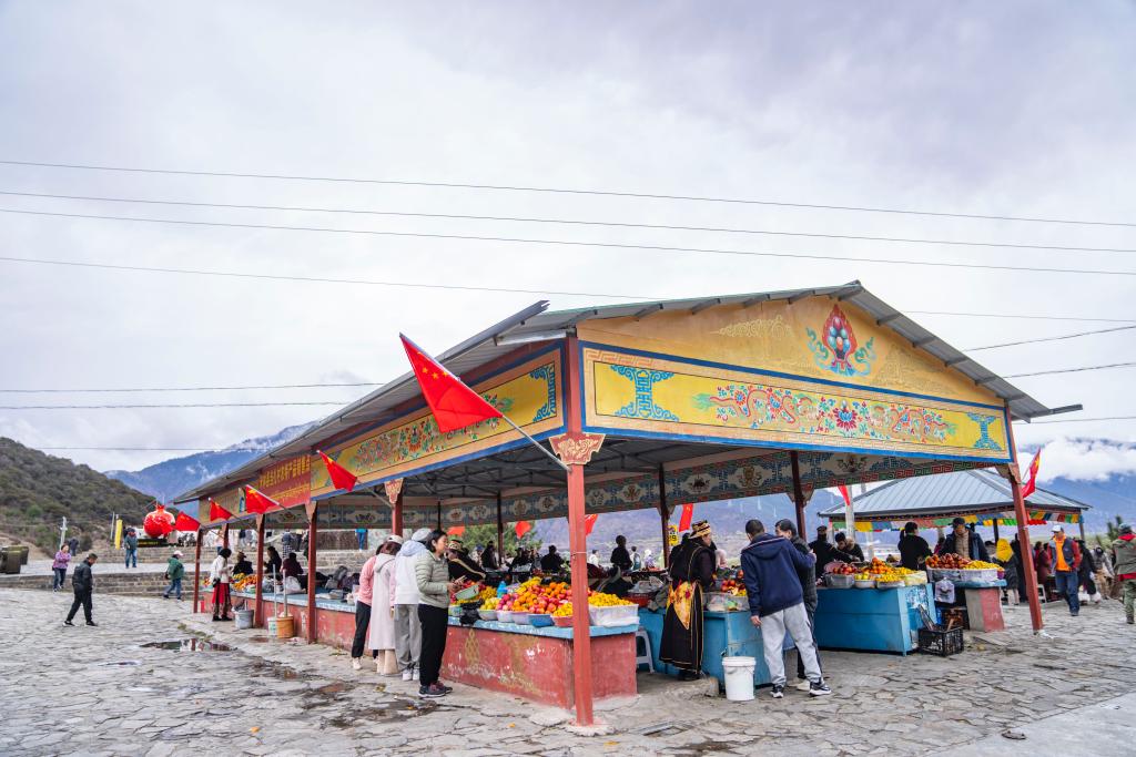 “2000年的时候,只有5、6户在卖水果。后来我带大家去附近的江达县、派镇等参观学习,看别人怎么售卖、怎么搞卫生。”68岁的边巴是羌渡岗村前村委会主任,他回忆,“以前摊位没有通水,从村里接出的管道一到冬天就裂。随着硬件改善和大家售卖经验日渐丰富,村民们的变化越来越大。”