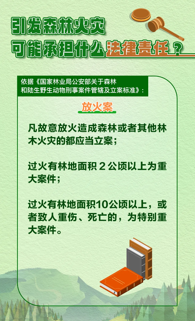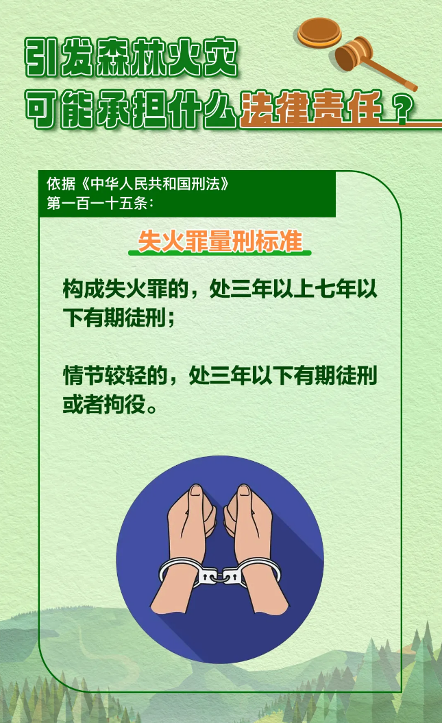 森林火灾突发性强、破坏性大,扑救较为困难,不仅能在短时间内烧毁大量林木,严重破坏森林生态系统和生物多样性,还会威胁人民群众生命财产安全。我国法律法规对涉火违法行为设定了明确且严厉的法律责任。
