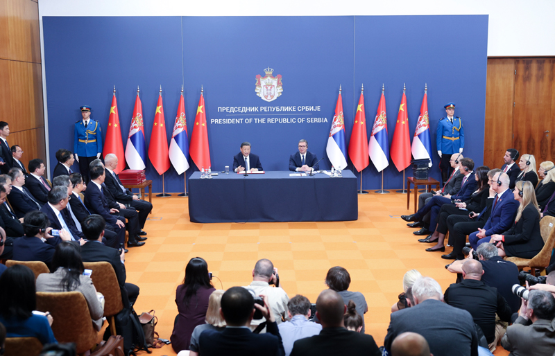 ——我们共同宣布构建新时代中塞命运共同体,开启中塞关系历史新篇章。8年前,塞尔维亚成为中国在中东欧地区首个全面战略伙伴。今天,塞尔维亚又成为首个同中国共同构建命运共同体的欧洲国家,充分体现了中塞关系的战略性、特殊性和高水平。