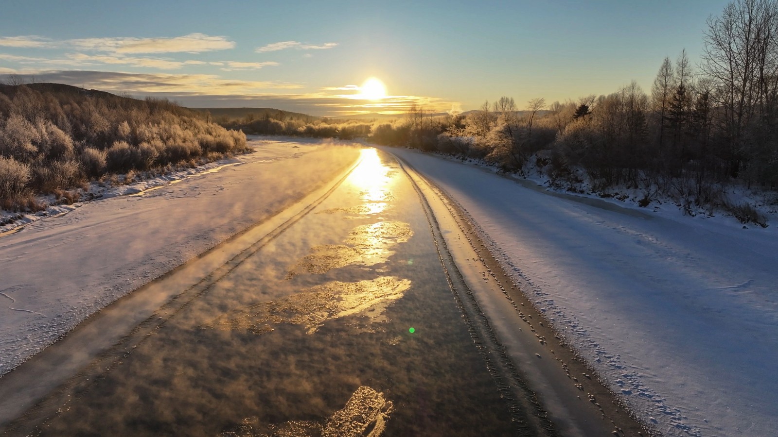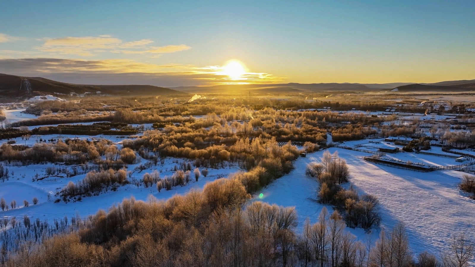图强的冬,不止有静态的素雅,更有动态的壮阔。尚未封冻的额木尔河蒸腾着袅袅水汽,与岸边的白雪相映成趣。雾气在寒风中凝结,在树枝上缀成厚厚的雾凇,造就了“一江寒水清,两岸琼花凝”的绝美画卷。