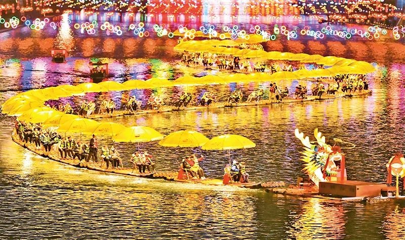 我国坚持把恢复扩大消费摆在优先位置,相继出台一系列促消费政策,消费市场恢复向好,消费的基础性作用更加显著。图为2024年2月11日,游客在湖北省恩施土家族苗族自治州宣恩县城贡水河休闲赏夜景。 新华社发 宋文/摄