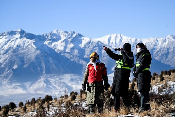 2025年1月28日,青海门源县境内的祁连山国家公园老虎沟管护站的生态管护员在巡护祁连山。目前祁连山国家公园设园准备工作已经全面完成,青海湖国家公园创建高水平推进,青海成为全国唯一一个三个国家公园在建省份,国家公园面积占全省自然保护地总面积的75%,以国家公园为主体、自然保护区为基础、各类自然公园为补充的自然保护地体系初步形成。