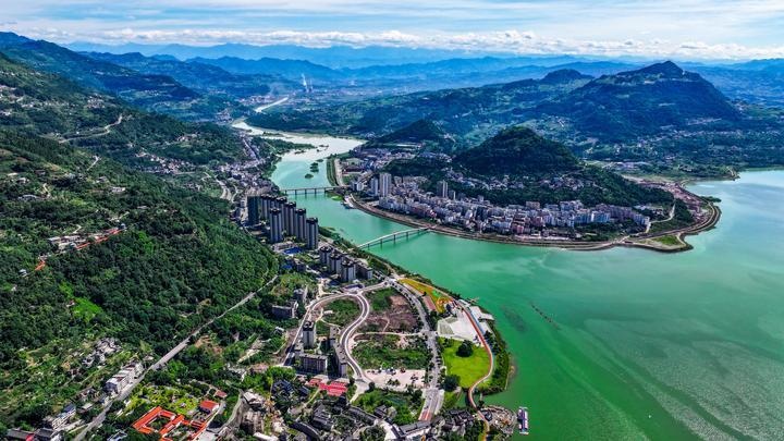 这是2025年7月3日拍摄的重庆开州城区景象(无人机照片)。重庆市开州区地处三峡库区腹地。三峡工程建成后,经国家批准,在小江开州城区段新建生态水位调节坝,形成了总库容约8000万立方米的城市内湖汉丰湖。围绕汉丰湖一湖碧水,开州区探索城市内湖综合治理模式,建立水环境修复机制、水生态保护机制和水资源利用机制,将环湖流域划分为滨湖城市人城景融合区、水源涵养区、土壤保持区、生态修复治理区、湿地保护区5个生态控制单元,筑牢湖周生态屏障、稳固湿地生态系统,有效改善人居环境、提升城市品质。