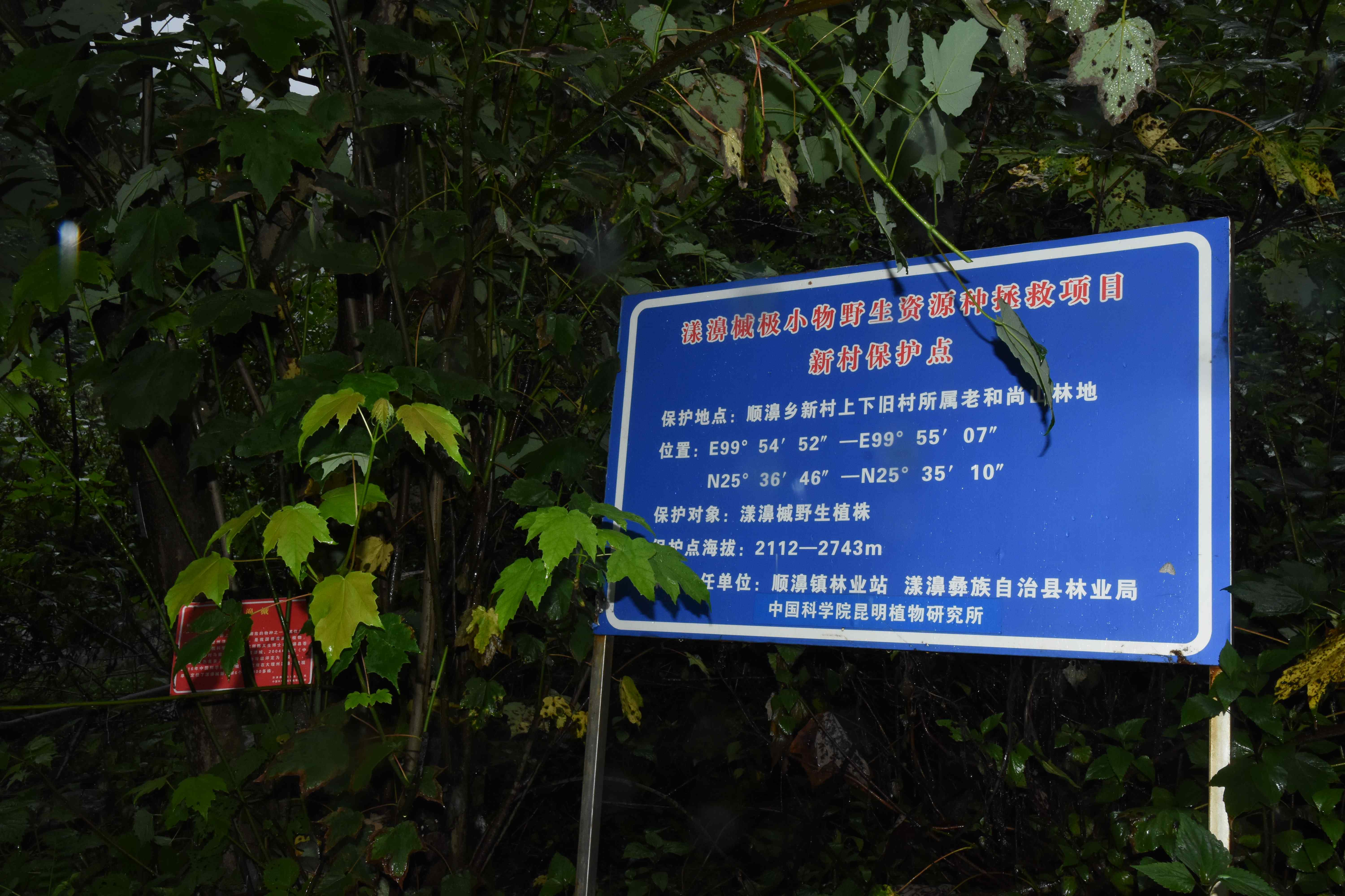 第二年开春,团队在漾濞县各乡镇扩大范围进行搜索,通过走访当地村民,对所有可能出现漾濞槭的地方进行了踏查,最终找到了577株个体,位于12个分布点。其中,除马鹿塘的5株,全部为2016年找到的新个体,515株位于老和尚山,但此山并非保护区,面临较严重的人为干扰。因此,新个体的发现没有让团队松一口气,反而他们对其开展研究和保护的心态更加急迫。2016年秋天,团队采集了新分布点的种子,交由昆明植物园进行人工繁育。第二年春天,5万株幼苗如期破土而出,成为漾濞槭保护的新起点。这些幼苗中,2000株回归到新发现的太平乡钓鱼岛种群附近;2000株近地保护于漕涧林场“云南滇西极小种群野生植物近地和迁地保护试验示范研究基地”;2000株迁地保护于红河州蒙自芷村林场;2000株在阿拉善SEE基金会和中国科学院昆明植物研究所合作下,于丽江市鲁甸乡一处冲沟建立了重建种群,不仅作为漾濞槭的迁地保护种群之一,也是对当地生态的修复。漾濞县林草局也积极同团队合作,对新发现的6个较大的漾濞槭种群建立了保护小区,进行了挂牌保护,并在种群的入口处安装了宣传牌。