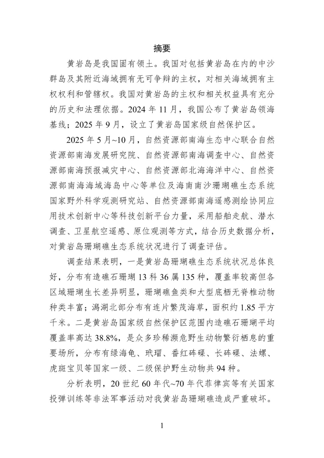 (中文版全文)《黄岩岛珊瑚礁生态调查报告》