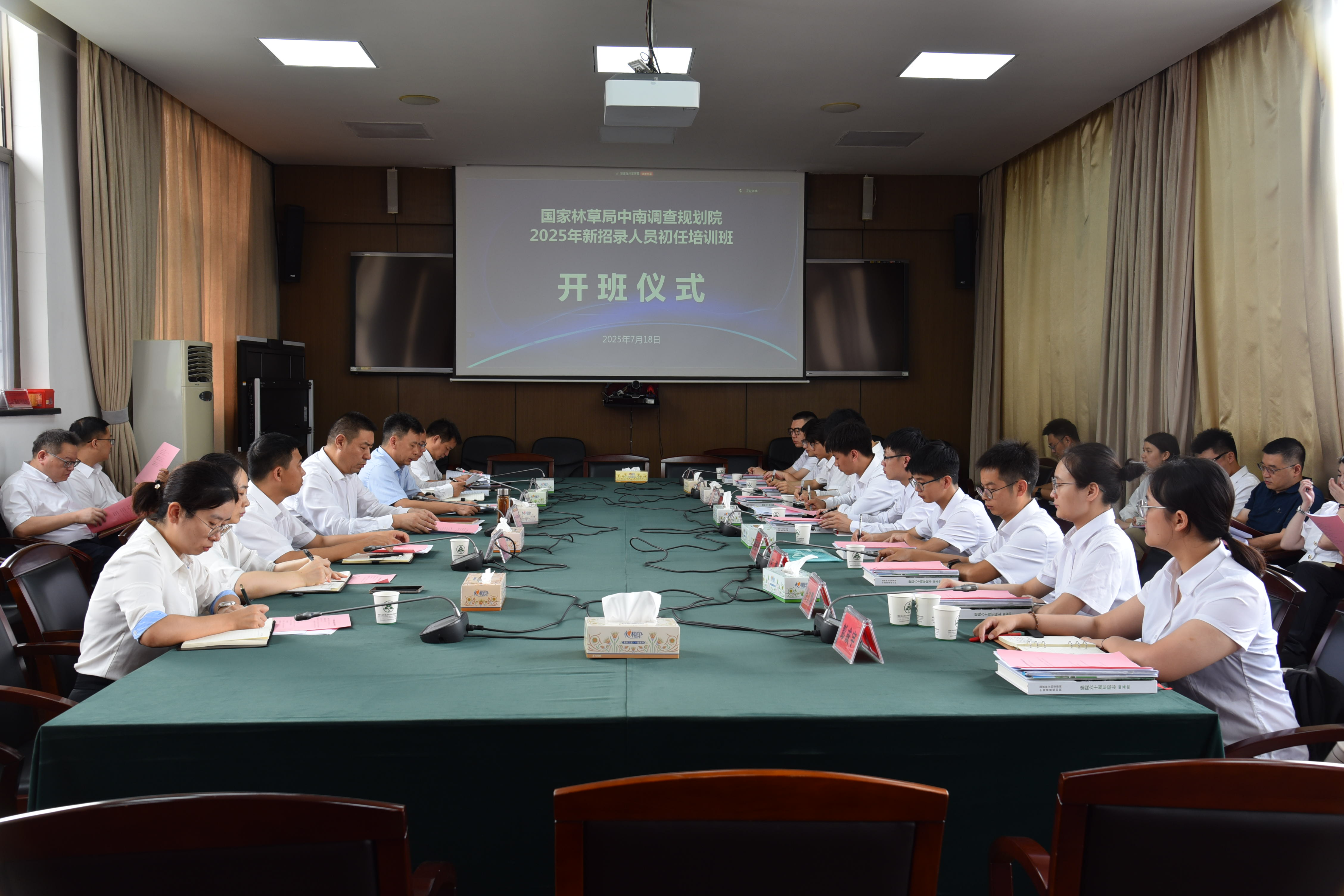 7月18日上午,在院院领导、各处室负责人出席培训班开班仪式。开班式由副院长(正司局级)周学武主持,院长、党委书记张平为新招录人员亲授“入职第一课”,他系统讲解了中南院发展历程、主责主业和文化传承,帮助新招录人员尽快增进对单位的全面了解。同时他还对新招录人员提出了殷切希望,一是要在思想政治上强化学习,提高政治判断力、政治领悟力、政治执行力,做政治上的明白人;二是要在拓宽知识广度上下功夫,学而不辍、增长本领,适应新时代林草工作新要求;三是要在专业技术上练就真本领,夯实专业知识,争做新时代林草青年先锋;四是要在担当作为上练就好作风,勇于担当、干出实绩,以实际行动书写林草青年新风尚。他鼓励新招录人员尽快转变角色,适应工作岗位,在林草事业改革发展进程中谱写壮丽青春。